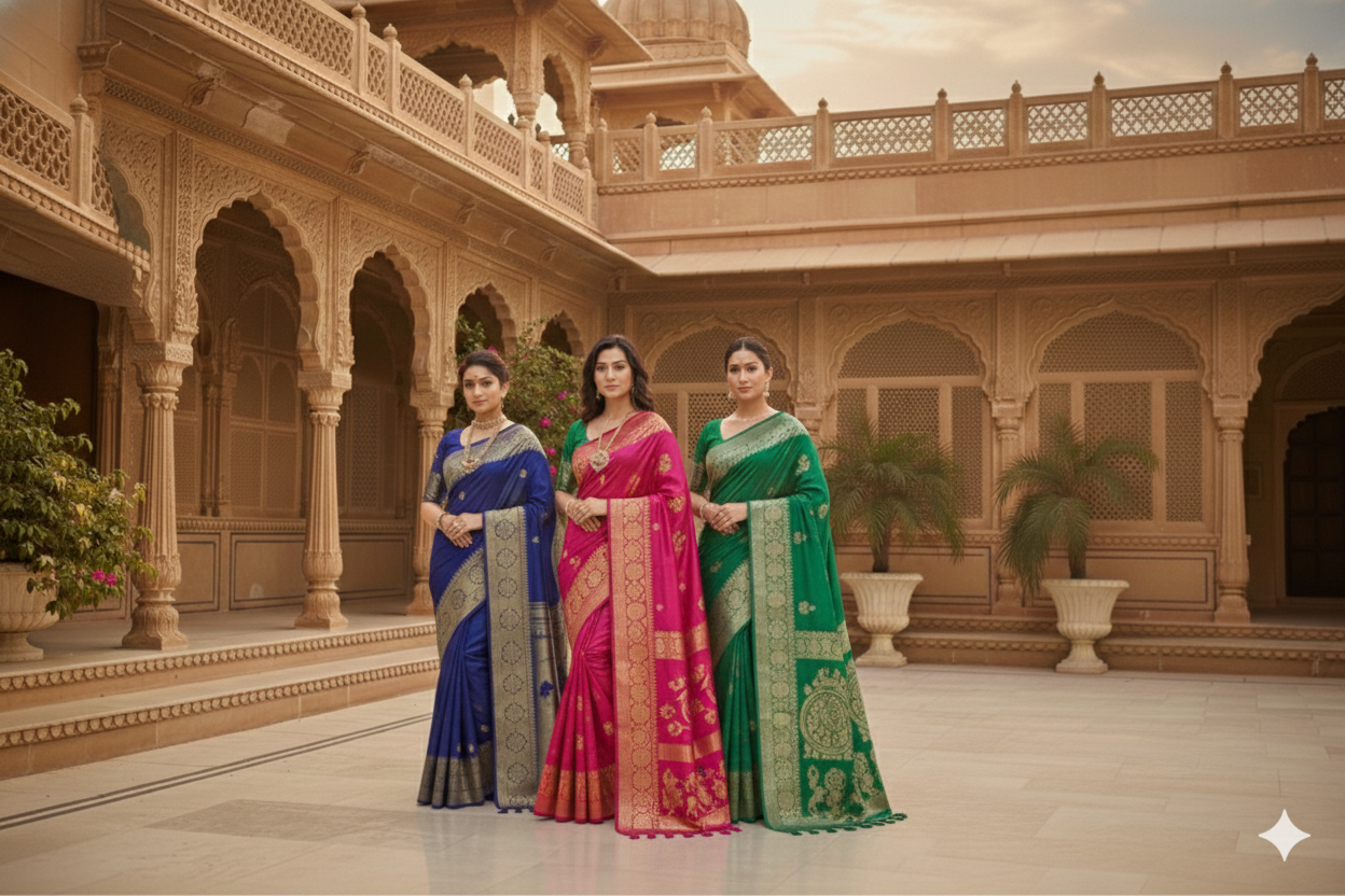 We craft exquisite handloom silk sarees and jewelry, embodying a commitment to timeless elegance and artisanal artistry. Our mission is to celebrate tradition while empowering skilled artisans, preserving their heritage in every piece.